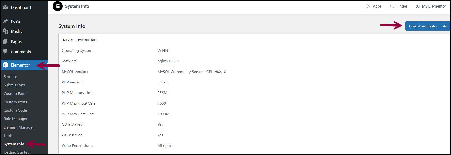 • Send your system info. You can find this in WP Admin >Elementor > System info.